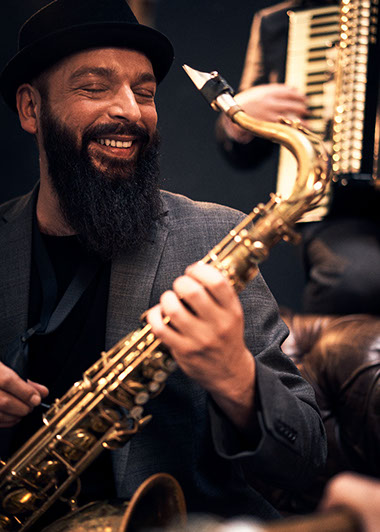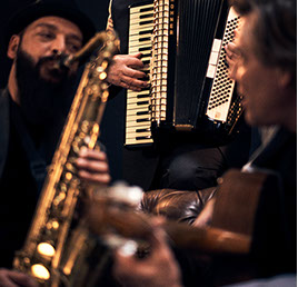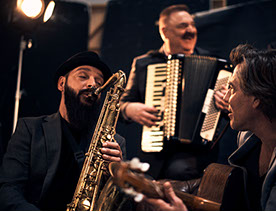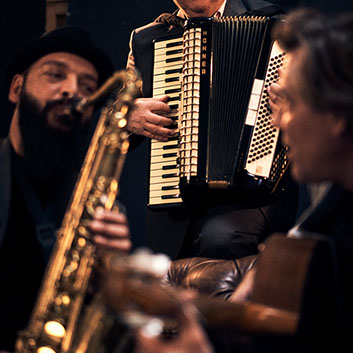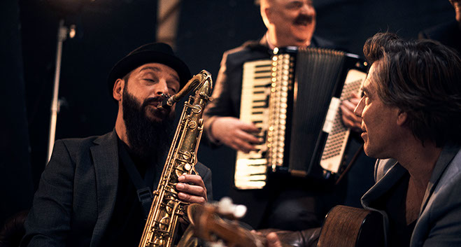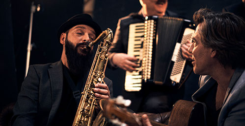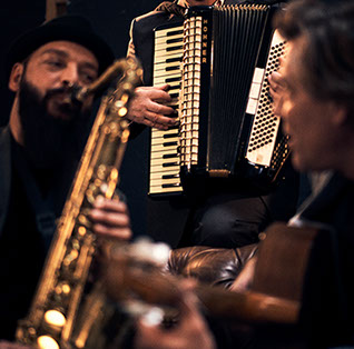 Aber sind wir nicht in einer Kirche? Weich schmelzend die Viola, fein singend die Violine, das Saxophon mit samtig-rundem Klang, das Akkordeon wie ein locker gespieltes Piano, Gitarre und Bass als subtiles rhythmisches Grundgerüst, alle perfekt abgestimmt im Zusammenspiel.